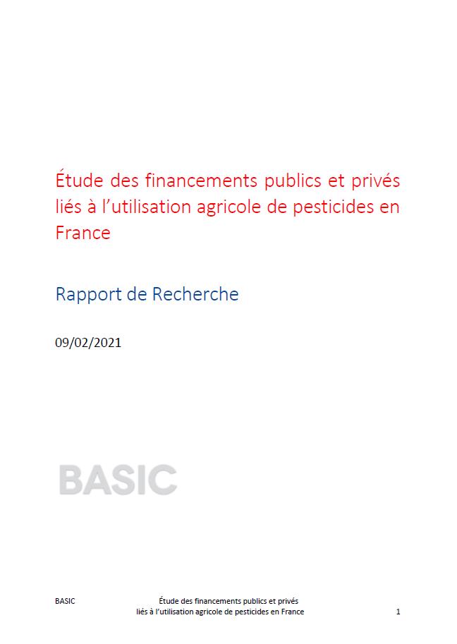 Etude des financements publics et privés liés à l’utilisation agricole de pesticides en France